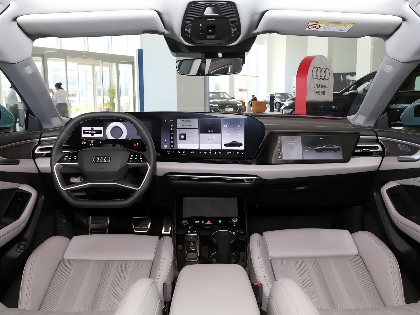 Sisällä ajoneuvossa on kolminkertainen näytön asetus, joka koostuu täydellisestä LCD-instrumenttiryhmästä, keskeisestä kosketusnäytöstä ja matkustajan puoleisesta viihteenäytöstä. Kolmen näytön porrastettu järjestely luo dynaamisen ja teknisen taitavan ilmeen, jota täydentää Audin viimeisin neliosainen litteäpohjainen ohjauspyörä. Fyysiset painikkeet ja nuppit säilytetään keskikonsolin pohjassa, jotta pääsy usein usein käytettyihin toimintoihin. Lisäksi uusi auto omaksuu Huawein edistyneen älykkään ajo-ratkaisun, jossa on kaksi lidaria, 11 teräväpiirtokameraa, kuusi millimetrin aallon tutkaa ja 12 ultraäänianturia lupaaen jännittävän ajokokemuksen.